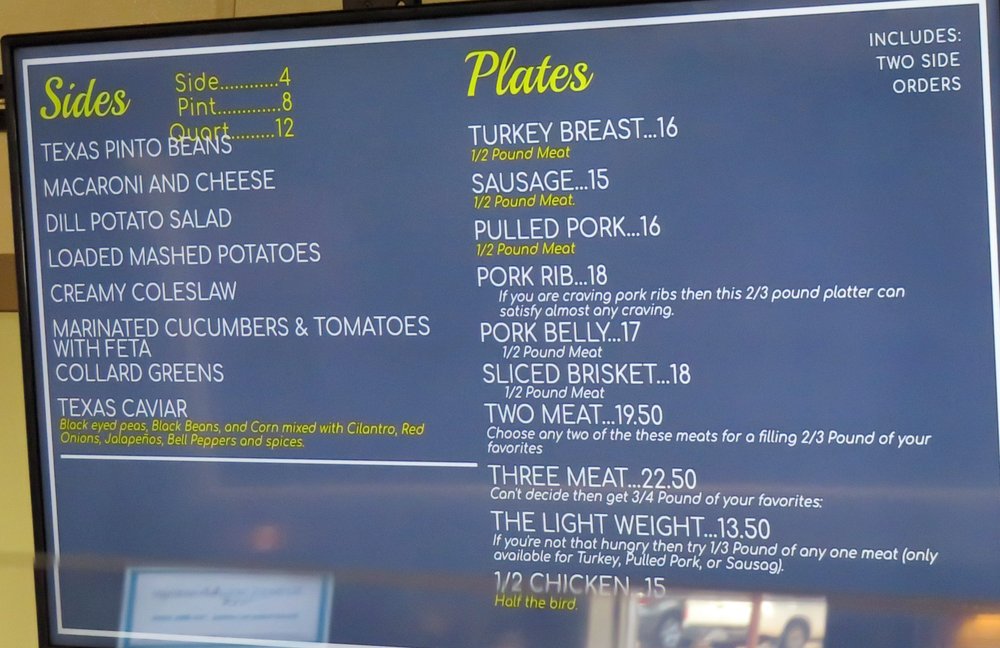 1 1-2lb smoked Barbeque meat, 3 pints of sides